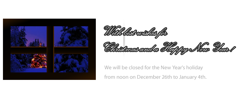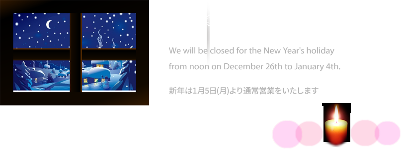 2025年12月27日~2026年1月4日までお休みとなります。新年は1月5日から通常業務となります。