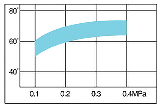 水がかかればよいというご用途では帯の上の方で、勢いよくスプレーされる必要がある場合には帯の下の方で見てください。 - Spray angle has its range.