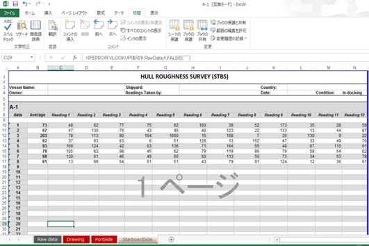 Rt(50)を12点計測しMHRを求め、最終的に全体平均船体粗さ(AHR)を決定します