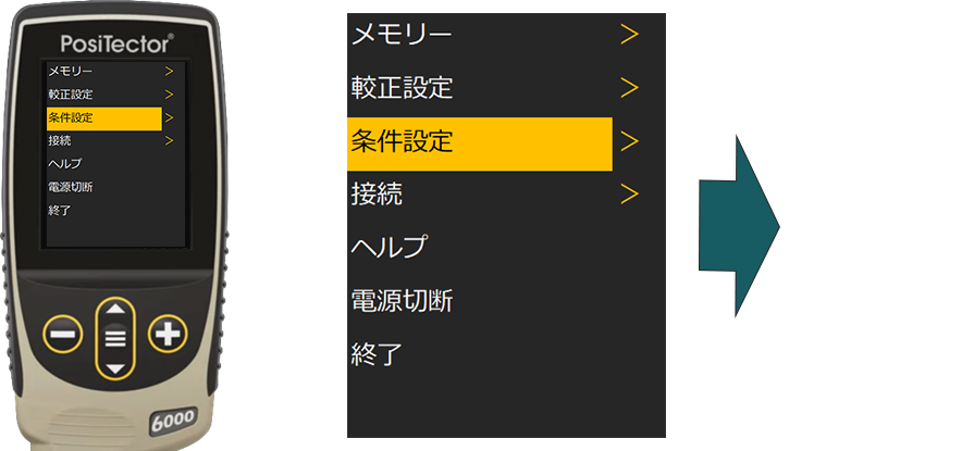 ボタンを押して選択します< 条件設定のメニュー画面 >