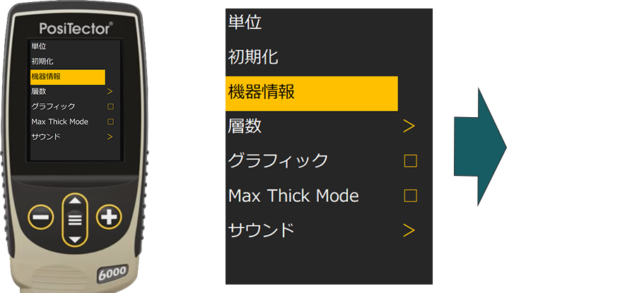 ボタンを押して、「機器情報」に移動してください< 機器情報の画面 >