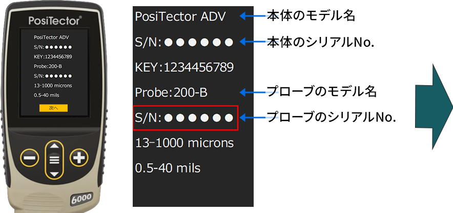 ボタンを押して選択してください機器情報としてシリアルNo. が表示されます